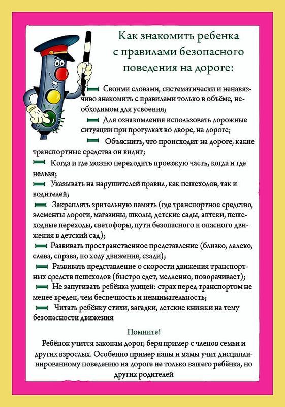 Рекомендации родителям по обучению детей дошкольного возраста правилам дорожного движения